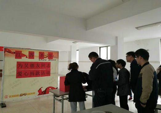 今年以来,江苏圣乐机械有限公司外资车间员工吴德友同志面临着人生的困境:家里父母身体一直不好,儿子正在上技校,本来夫妻二人维持一家的开销已经很紧张,可是屋漏偏逢连夜雨,天有不测风云,吴德友的妻子在2016年12月被查出患有胰腺癌晚期,这使得一家人的重担全部落在吴德友一人身上。